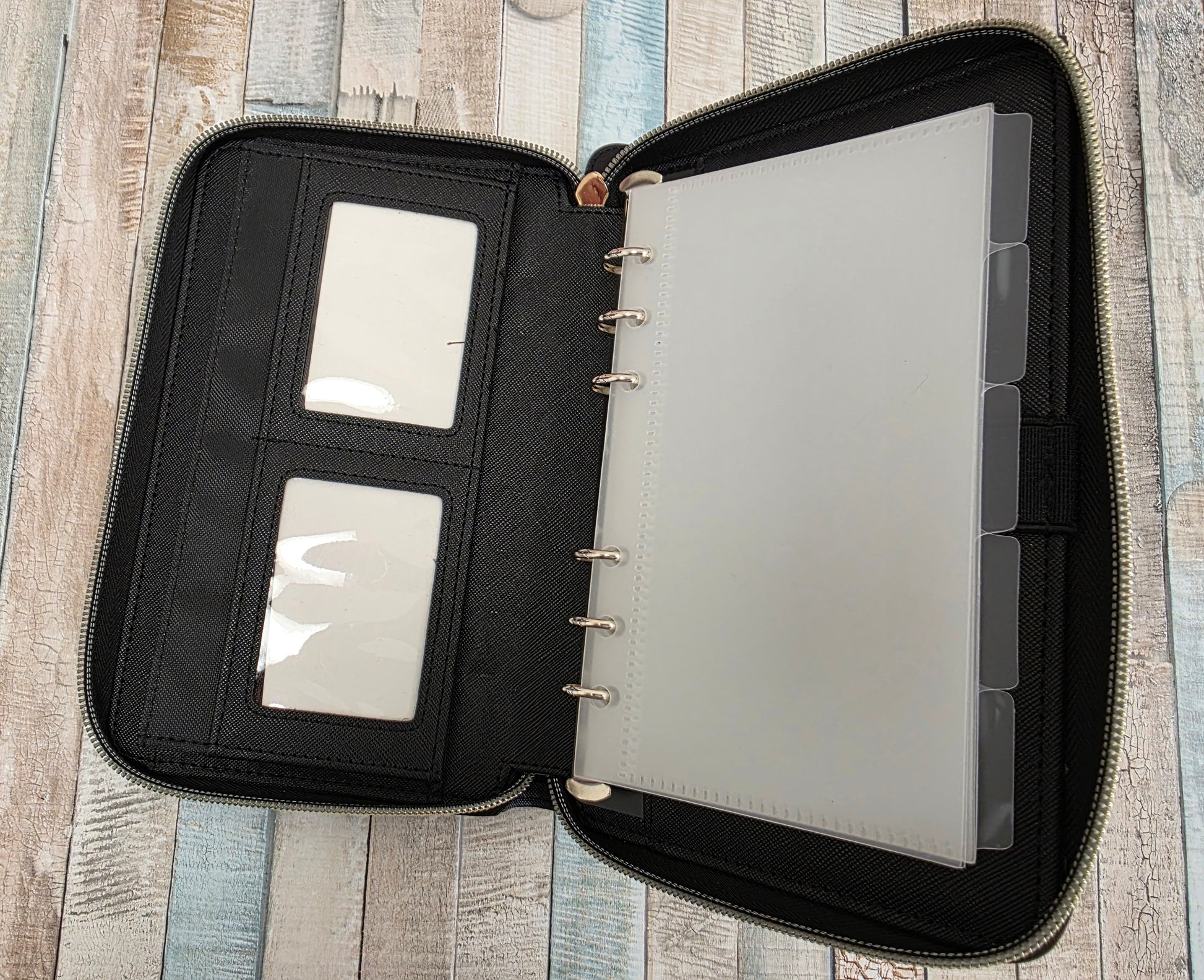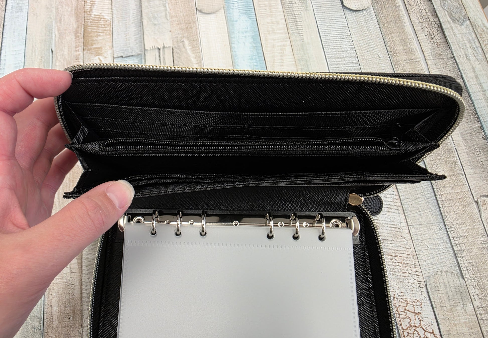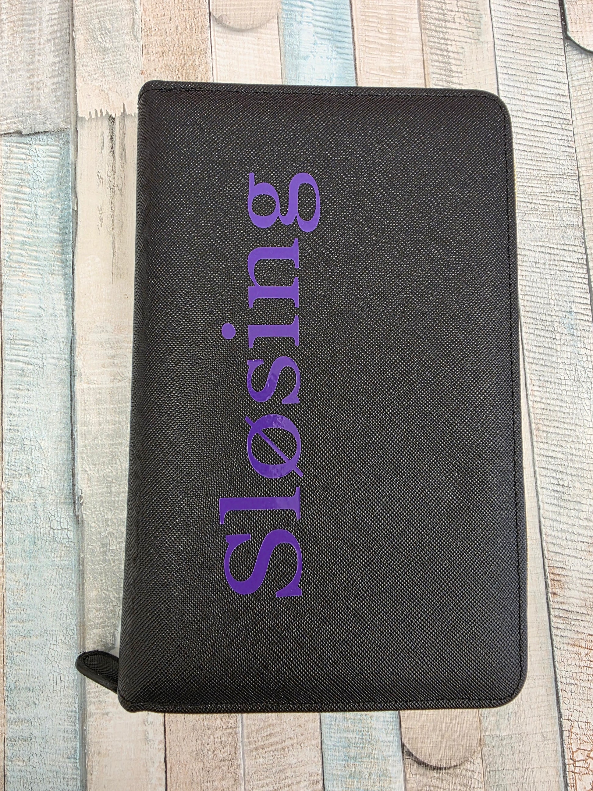 Skreddersy din egen binder med 5 stk lommer med flik (trenger ikke brette sedlene) med egne kategorier etter eget behov (f.eks mat, klær, shopping, pant osv).